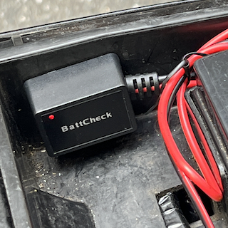 始動に手こずるうちにバッテリーが弱る事態が多発。しばらく間を置くと復活することが多いが、2週間空くと要充電のことも。始動の度に不安に駆られるのも嫌なので、バッテリーチェッカーを導入。