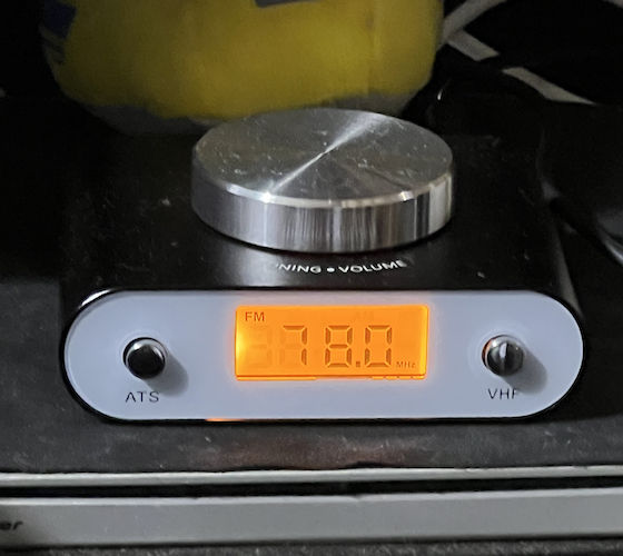 価格はラジオ並み、サイズは手のひらサイズ。付属の異様に長いフィーダー付きロッドアンテナを屋外の手すりに設置したところ、実用には十分な感度を確保。何しろデザインが素晴らしい。BluetoothスピーカーのAUX入力で運用中。
